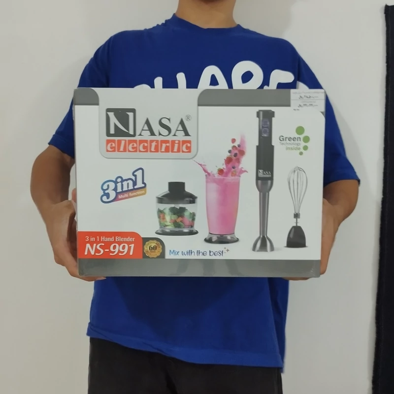 گوشتکوب 3 کاره ناسا الکتریک مدل NS-991 دارای توانی به قدرت 800 وات است که به راحتی می تواند غذاهای مختلف و مواد سفت و سخت را پوره، خرد و یا له نماید. جنس بدنه دستگاه از آلومینیوم می باشد و میله ی گوشت کوب از استیل ضد زنگ است که سبب شده استحکام ، مقاومت و دوام دستگاه بالاتر رود.