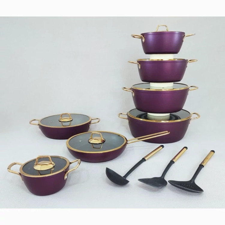 سرویس قابلمه 17 پارچه چدن گرانیت KZP بادمجانی با ارسال رایگان