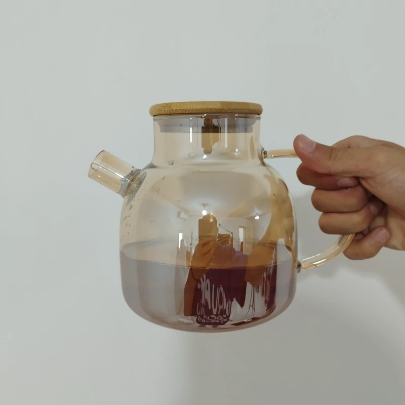 قوری پیرکس عسلی 1200 میلی لیتر درب بامبو NATALY ناتالی شعله مستقیم