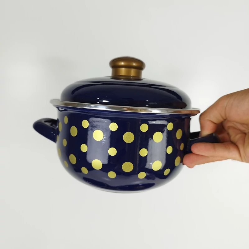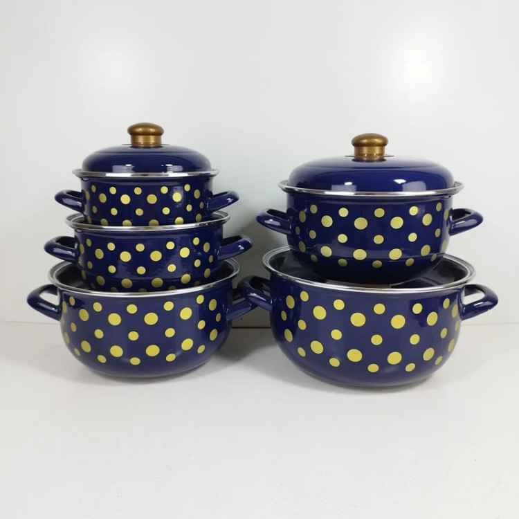 سرویس قابلمه 10 پارچه لعابی ظروفی مناسب و منحصربهفرد برای پخت انواع خورش، مربا،سوپ، آش و... محسوب میشود. این ظرف دوستداشتنی از ورق فلز مرغوب با روکش لعاب ساخته شده است تا مقاومت لازم در برابر حرارت و گرما را داشته باشد و با گذشت زمان دچار آسیبدیدگی نشود؛ بهاینترتیب با خیالی آسوده میتوانید این قابلمه را روی شعلهی مستقیم اجاقگاز قرار دهید. ظروف لعابی در مقایسه با تفلون یا انواع ظروف فلزی روکشدار، گزینهای سالمتر برای طبخ غذاست. در دو طرف بدنهی ظرف دستههایی تعبیه شدهاند که حمل و جابهجایی ظرف را برایتان سادهتر خواهند کرد. طراحی فانتزی و جذاب این سرویس در کنار رنگ های شفاف با درخشش، زیبایی و جذابیت آن را دوچندان کردهاند. این سرویس زیبا شامل 5 قابلمه به سایز های 24 - 22 - 20 - 18 , 16 سانتی متر می باشد این ظروف در رنگ ها و طرح های مختلفی تولید شده که می توانید با توجه به رنگ آشپزخانه تان آن را انتخاب کنید.با طبخ و سرو غذا داخل این ظرف خوشساخت و زیبا، میتوانید سفرهای رنگین و اشتها برانگیز برای خانواده یا مهمانان بچینید.
