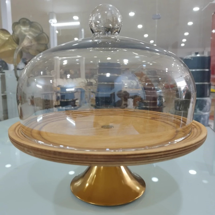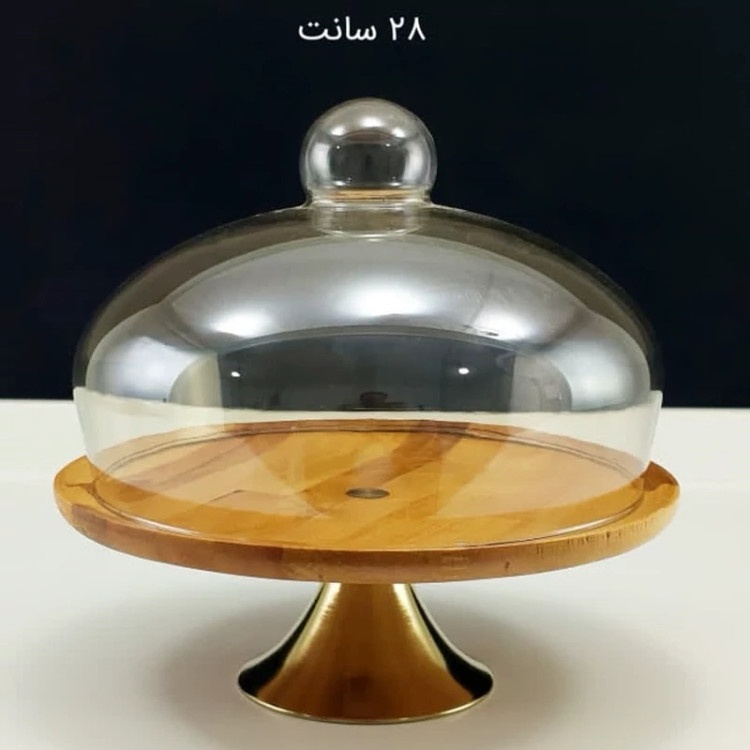کاپ کیک پایه دار 110391 با درب شیشه ای دودی و چوب 3 لایه ارسال رایگان