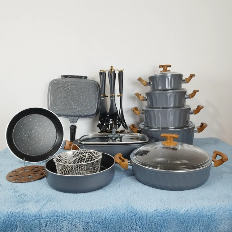 سرویس قابلمه گرانیتی 25 پارچه اویز مدل الیپس خاکستری با ارسال رایگان