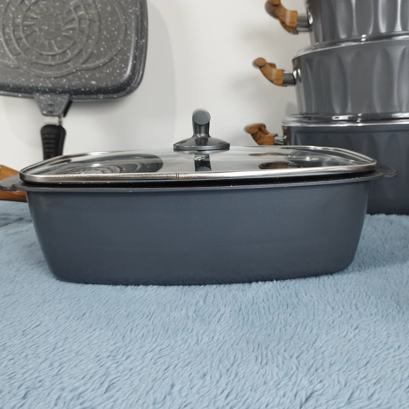 سرویس قابلمه گرانیتی 25 پارچه اویز مدل الیپس خاکستری با ارسال رایگان