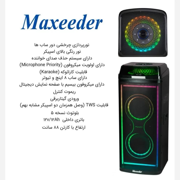 اسپیکر بلوتوثی تکی MAXEEDER مدل 8A08 با ضمانت 12 ماهه ارسال رایگان