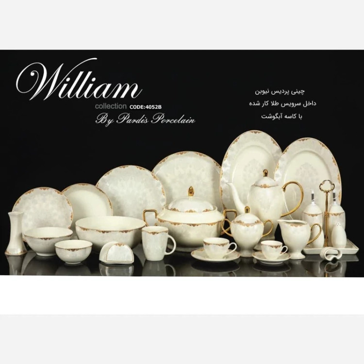 سرویس چینی ویلیام ، جای هیچ نگرانی برای خانم های با سلیقه که به سرویس غذاخوری و پذیرایی اهمیت به خصوصی می دهند ، نمی گذارد. امروزه با توجه به تنوع در ظروف غذایی و پذیرایی ، همچنان ظروف چینی مورد استقبال قرار می گیرند. از دلایل استقبال بی نظیر از ظروف چینی می توان به قابلیت شستشو در ماشین ظرفشویی ، قابلیت استفاده در مایکروفر ، رعایت اصول بهداشت در طی روند ساخت ، تنوع و تعداد ظروف اشاره کرد