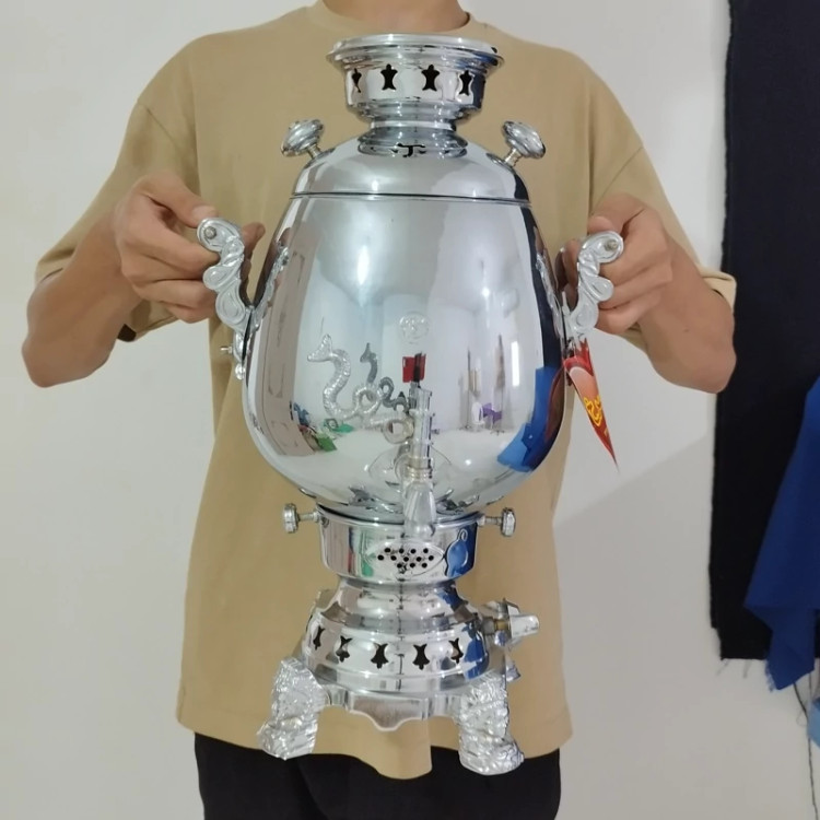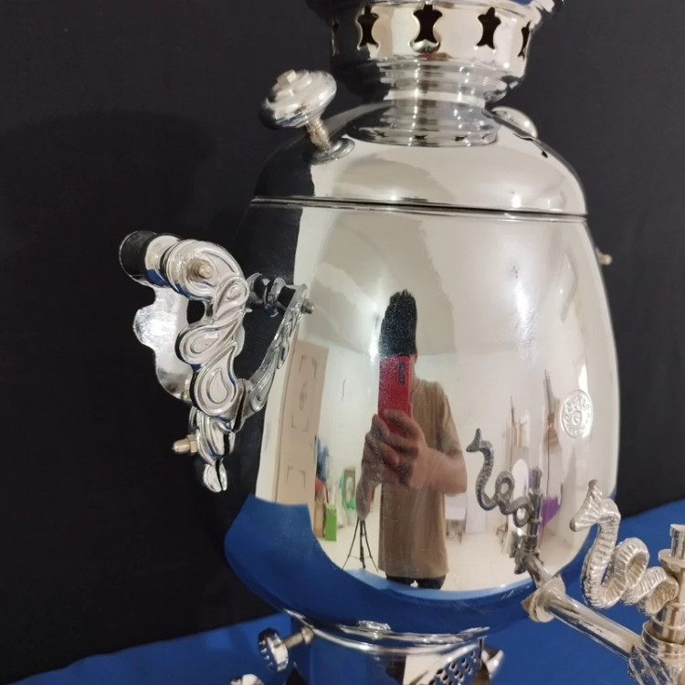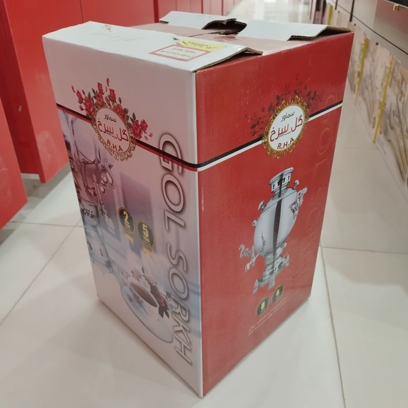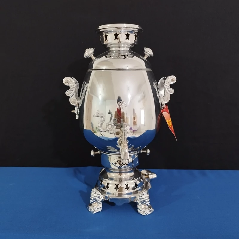 سماور های گازی گل سرخ با بدنه ای از جنس برنج تولید شده و قسمت بیرونی بدنه از ترکیب نیکل و کروم بسیار صیقلی می باشد