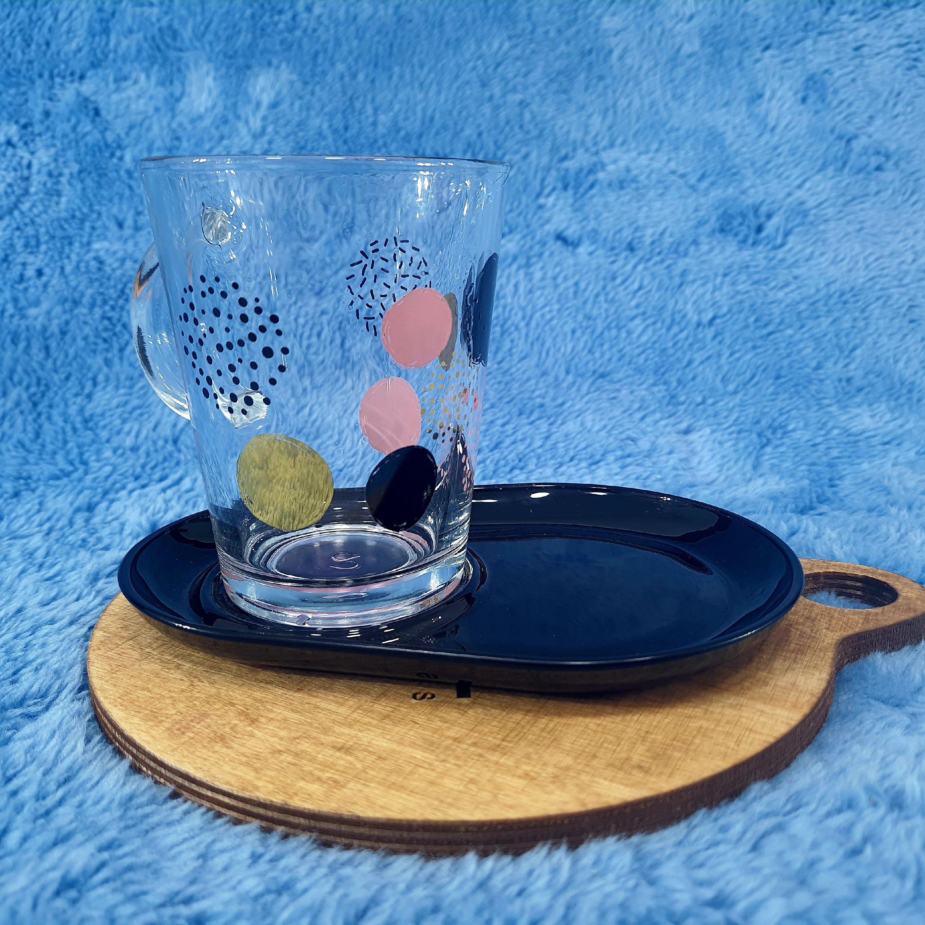 شامل لیوان بلوری دستهدار و زیره سرامیکی مناسب جهت سرو انواع کیک، بیسکویت، شکلات و … همراه با نوشیدنی وزن 740