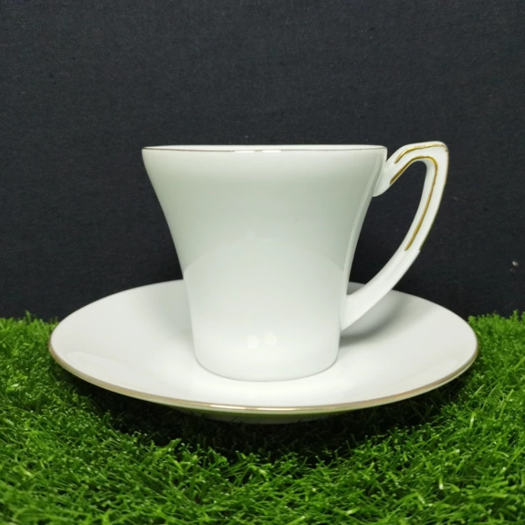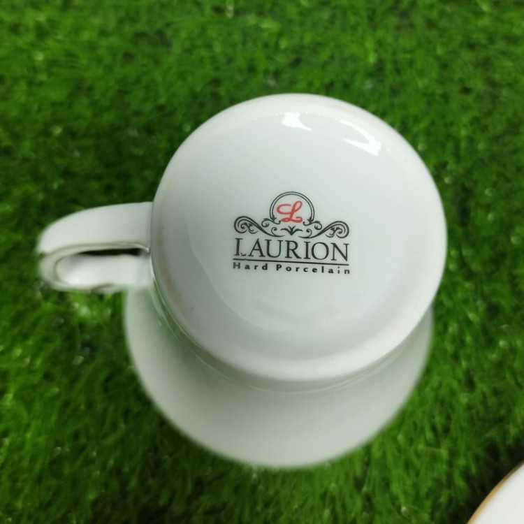 🔶 فنجان و نعلبکی چینی لورین دیپلمات لب طلا بسته 12 عددی ( 6 عدد فنجان + 6 عدد نعلبکی )