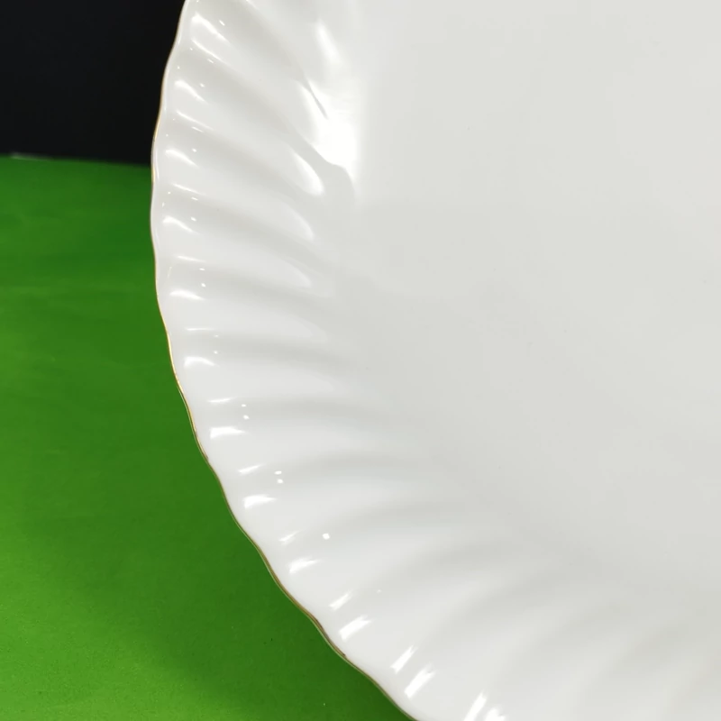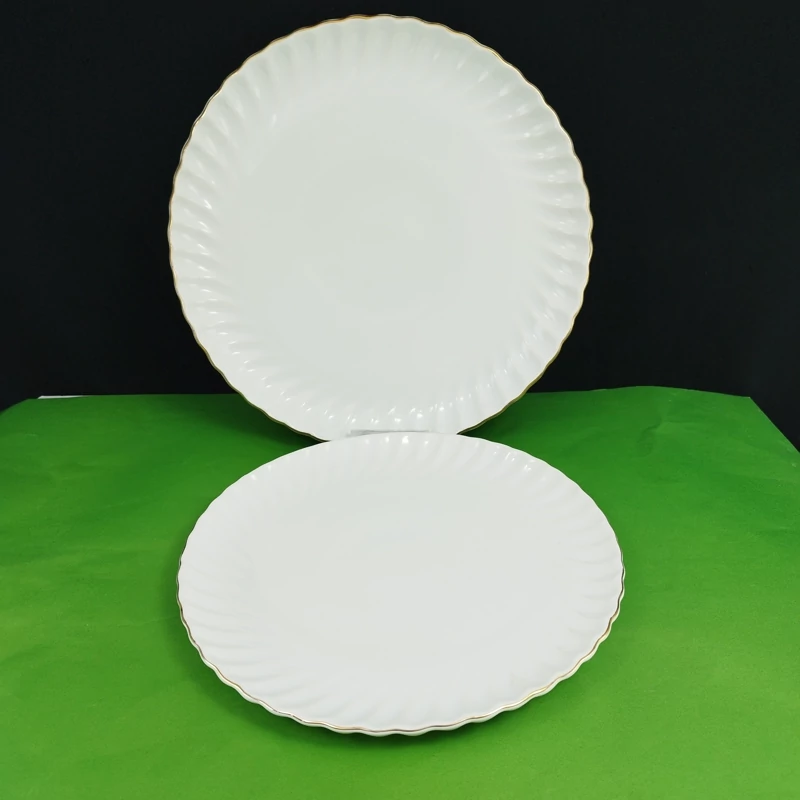 دیس گرد لب طلا سرامیکی مدل از جذاب ترین وسیله هایی است که در میهمانی می توانید به عنوان ظرف پذیرایی استفاده کنید. این محصول از جنس و با لعابی سفید رنگ پوشیده است. شما می توانید از این تابه رابرای سرو غذا استفاده کنید.
