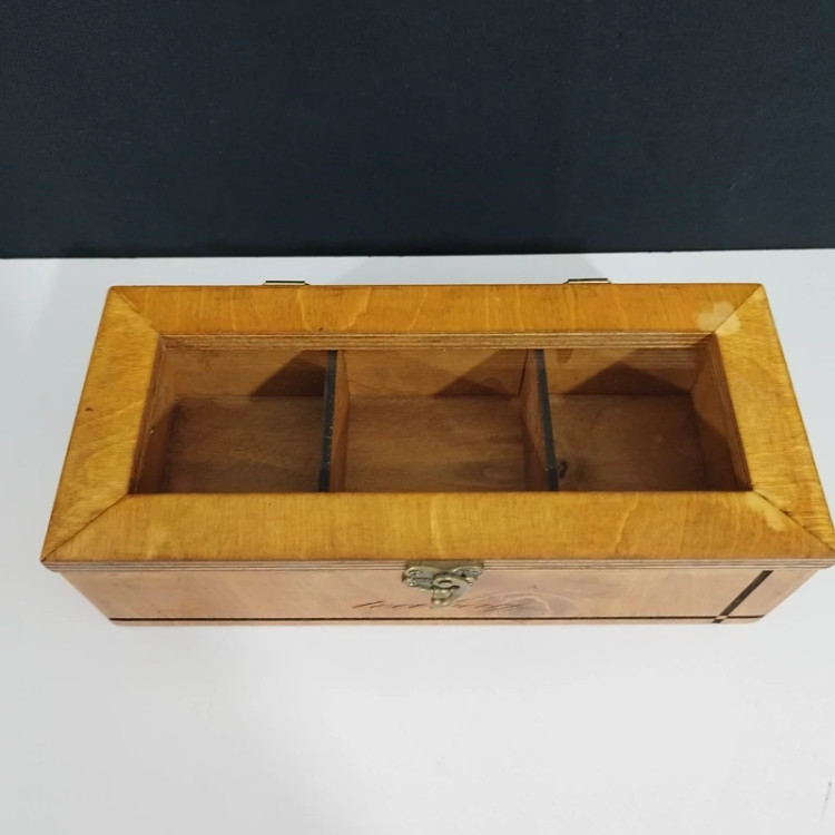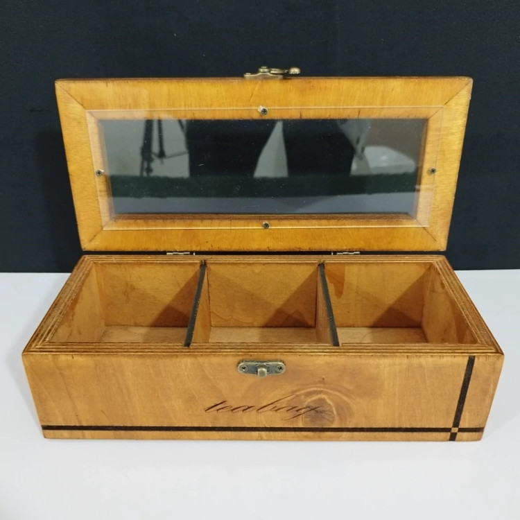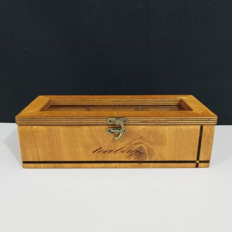 جعبه پذیرایی تی بگ 3 خانه چوبی دارای درب طلقی می باشد. به دلیل ظرافت در طراحی، وسیله ای پر کاربرد در تزیین و دکور می باشد. جعبه تی بگ و جعبه دم نوش در بین دیگر جعبه های پذیرایی از محبوبیت بیش تری برخوردار هستند.
