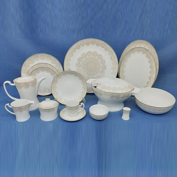 سرویس چینی 87 پارچه برند لورین مدل ستین ( رنگ کرم )