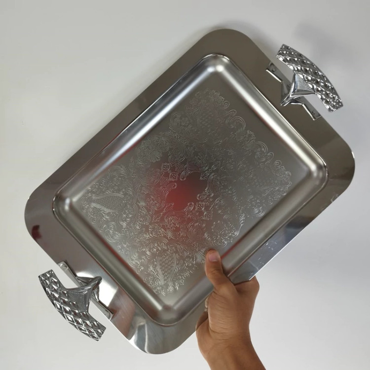سینی استیل مستطیل متوسط بی پایه ریور کد 1216 بسته 1 عددی با ارسال رایگان