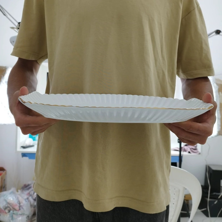 دیس بیضی سرامیک آماتیس مدل انگشتی لب طلا کد 725 ارسال رایگان