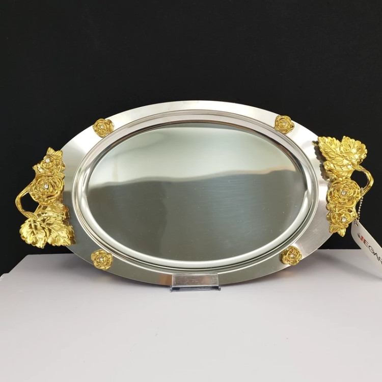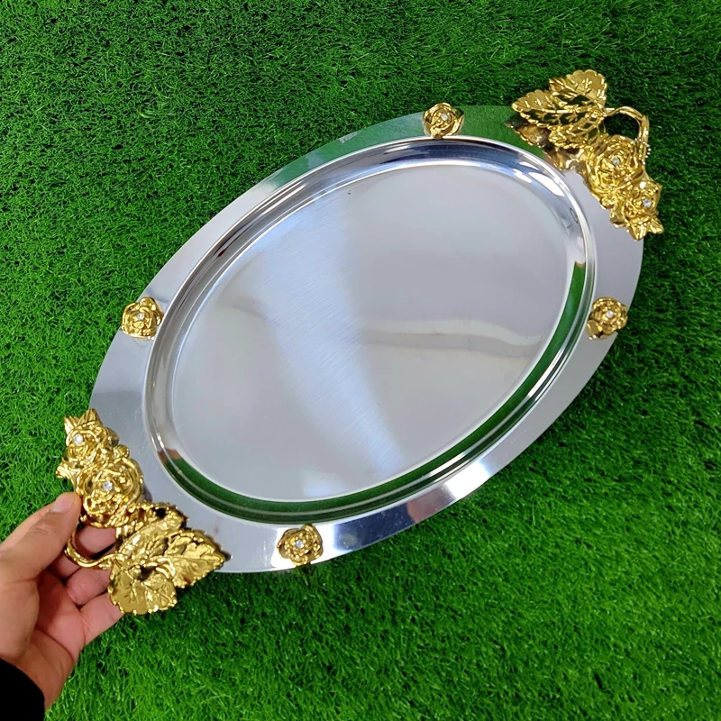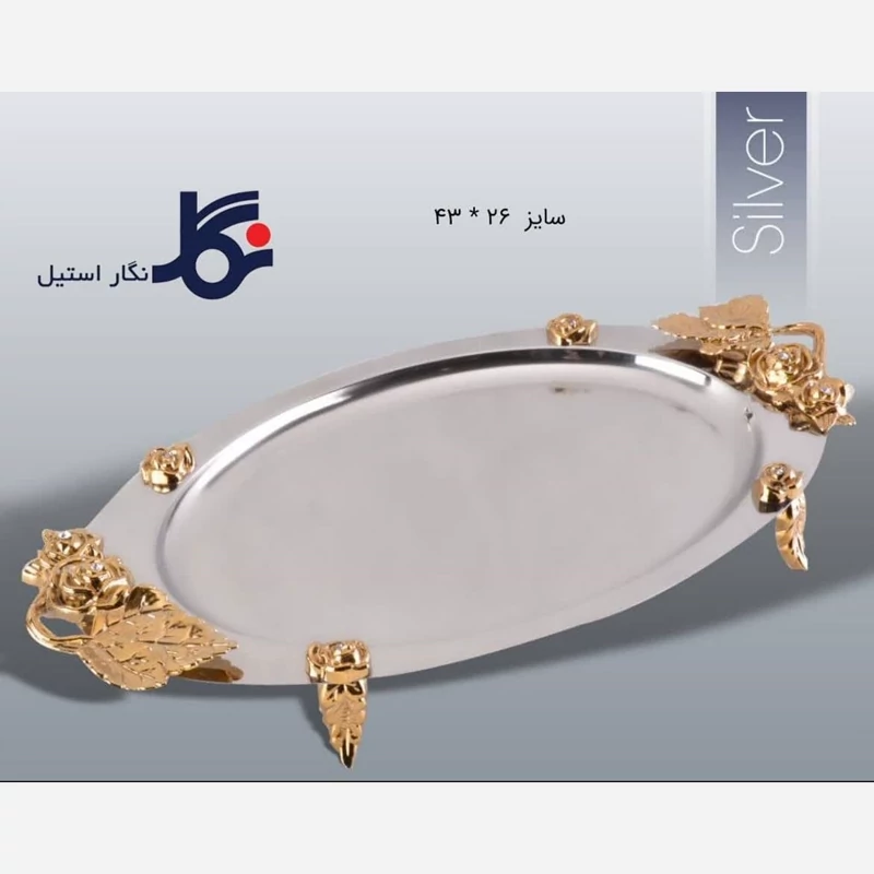 سینی استیل بیضی نگار بزرگ مدل رز کد 314 ارسال رایگان