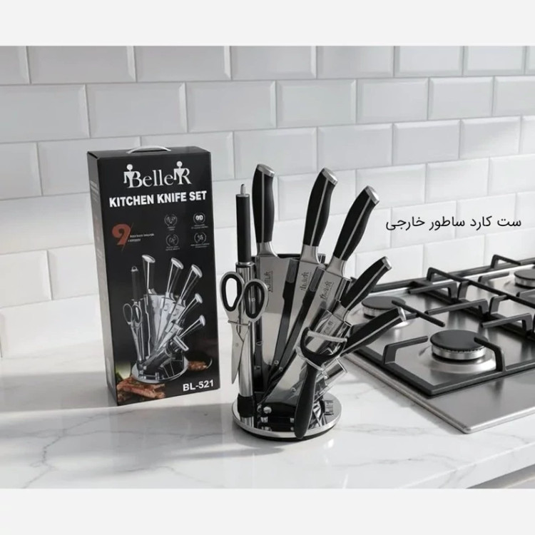 ست کارد ساطور 9 پارچه Beller کد 524 مشکی با ارسال رایگان