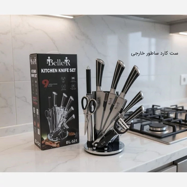 ست کارد ساطور 9 پارچه Beller کد 521 مشکی با ارسال رایگان