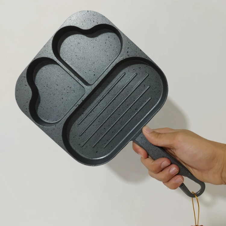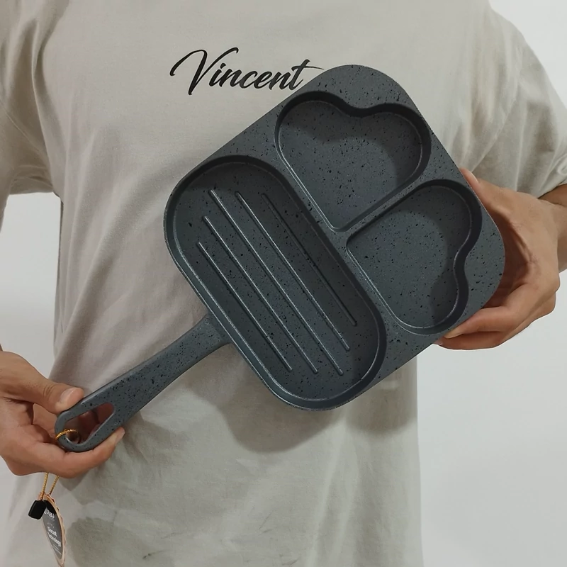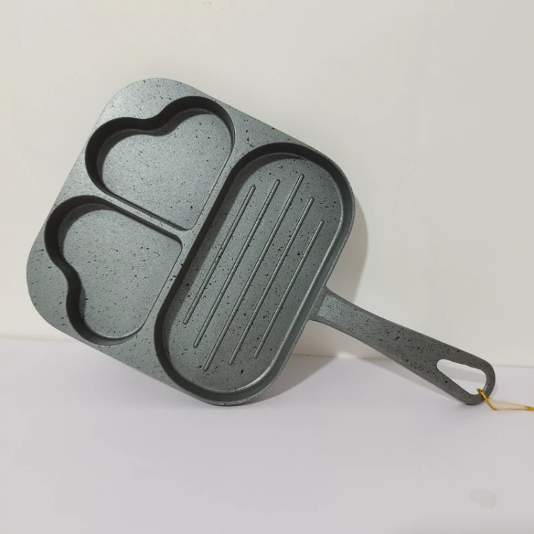 تابه گرانیتی تک دسته پن کیک 3 خانه پیلو طوسی