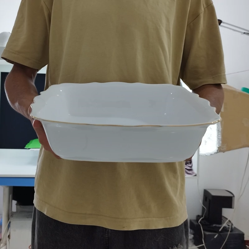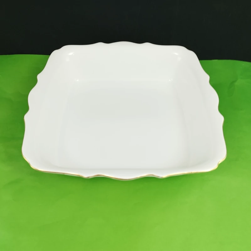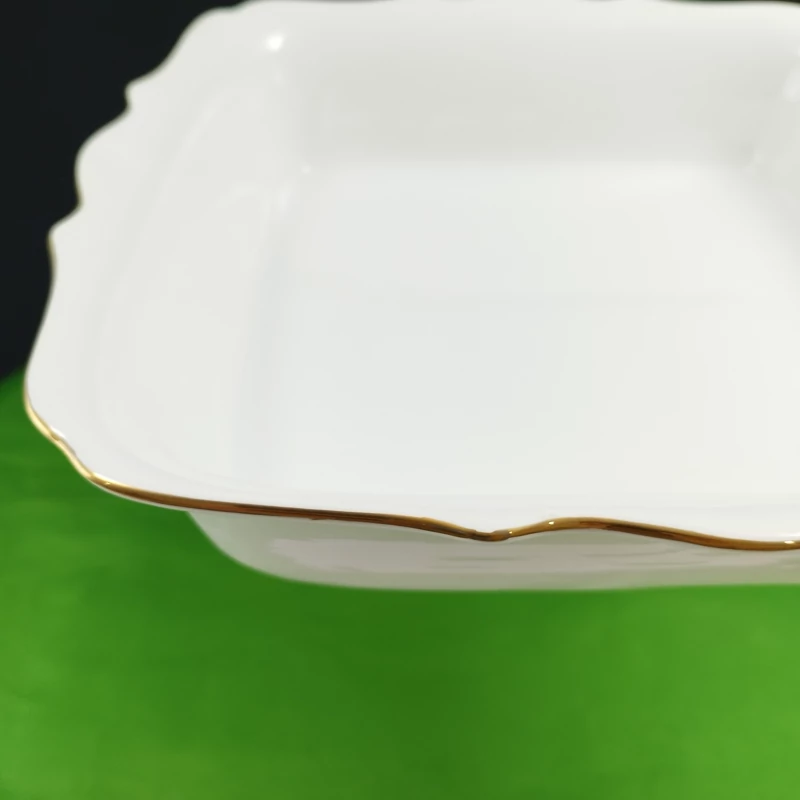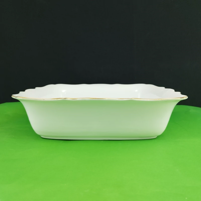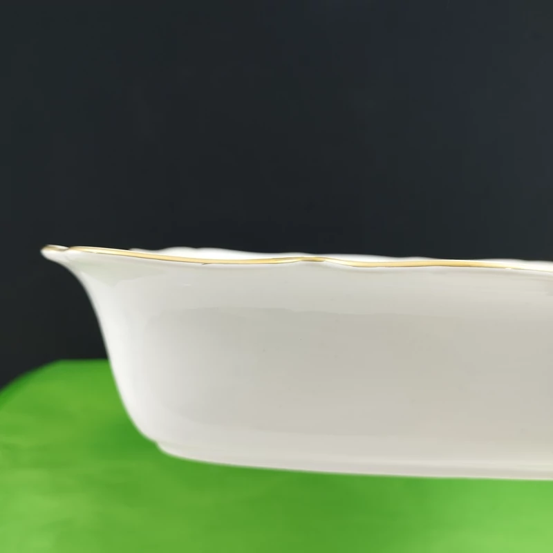 تابه مستطیل لب طلا سرامیکی مدل ماهور از جذاب ترین وسیله هایی است که در میهمانی می توانید به عنوان ظرف پذیرایی استفاده کنید. این محصول از جنس و با لعابی سفید رنگ پوشیده است. شما می توانید از این تابه رابرای سرو غذا استفاده کنید.