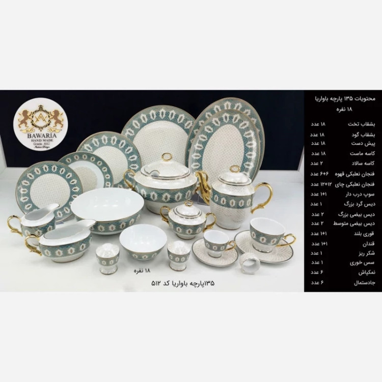 این سرویس 135 پارچه شامل اقلام زیر می باشد: