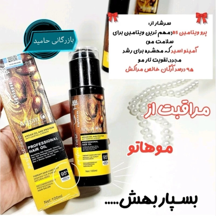 یکی از محصولات مراقبتی بسیار مهم برای مو روغن آرگان است. روغن آرگان لایتنس یک محصول مناسب برای انواع مو بوده که 95 درصد روغن آرگان طبیعی در ترکیبات خود دارد. این محصول بافت بسیار سبکی دارد و به محض استفاده جذب مو میشود. و هیچ چربی اضافهای روی مو باقی نمیگذارد. روغن آرگان لایتنس میتواند خشکی موهای شما را از بین ببرد. باعث ایجاد لطافت در موهای شما شود و با ویتامین رسانی به موهای شما از ریزش آن جلوگیری کند. همچنین این روغن از موخوره جلوگیری کرده و به رشد موهای شما کمک میکند. اگر سلامت و زیبایی موهایتان برای شما اهمیت دارد استفاده از این محصول را به شما توصیه میکنیم. حجم این روغن مو 100 میل