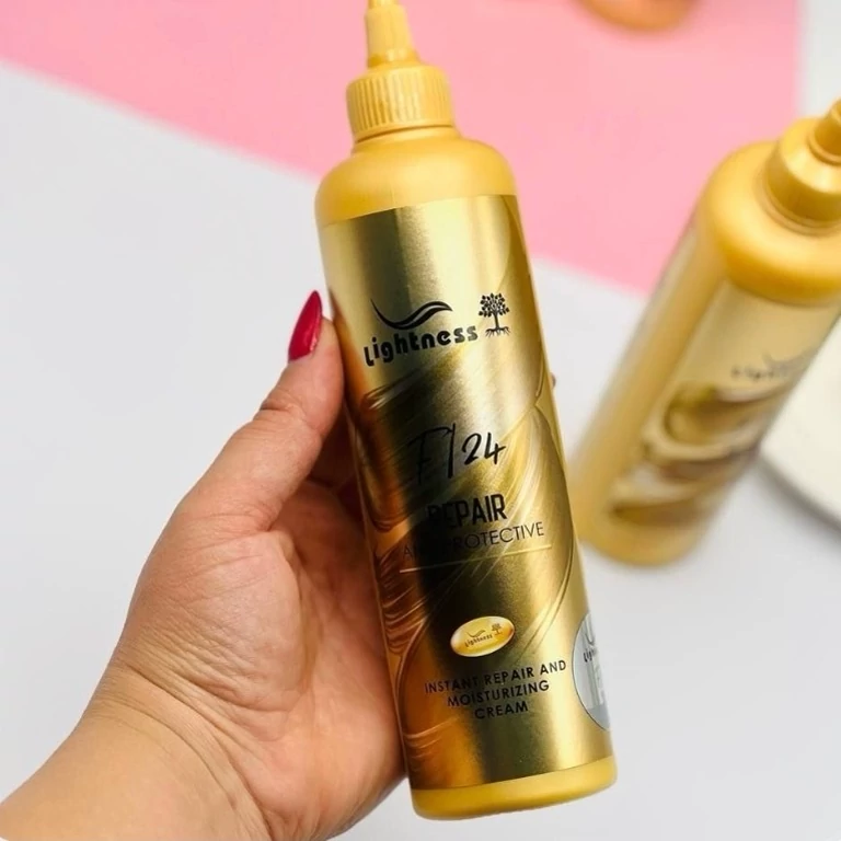کرم و ماسک مو Lightness مدل F24 طلایی با فرمول ترمیمی و ترکیبات مغذی، یکی از بهترین انتخاب ها برای مو های خشک، رنگ شده و آسیب دیده است.