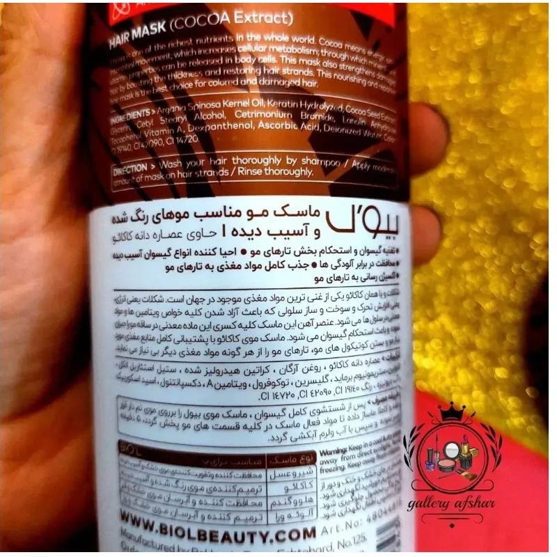 ماسک موی فری سولفات داخل حمام بیول (اورجینال) عصاره دانه کاکائو