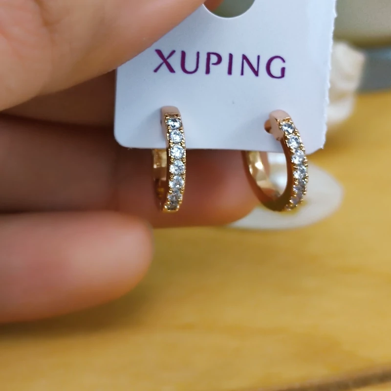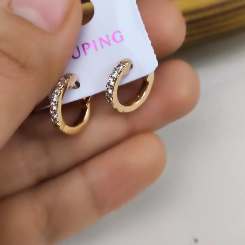 گوشواره ژوپینگ حلقهای یک ردیف نگین برترین برند بدلیجات مشابه طلا اکسسوری زیورآلات مدرن دخترانه وزنانه مناسب برای هدیه وکادو مناسب استفاده روزمره